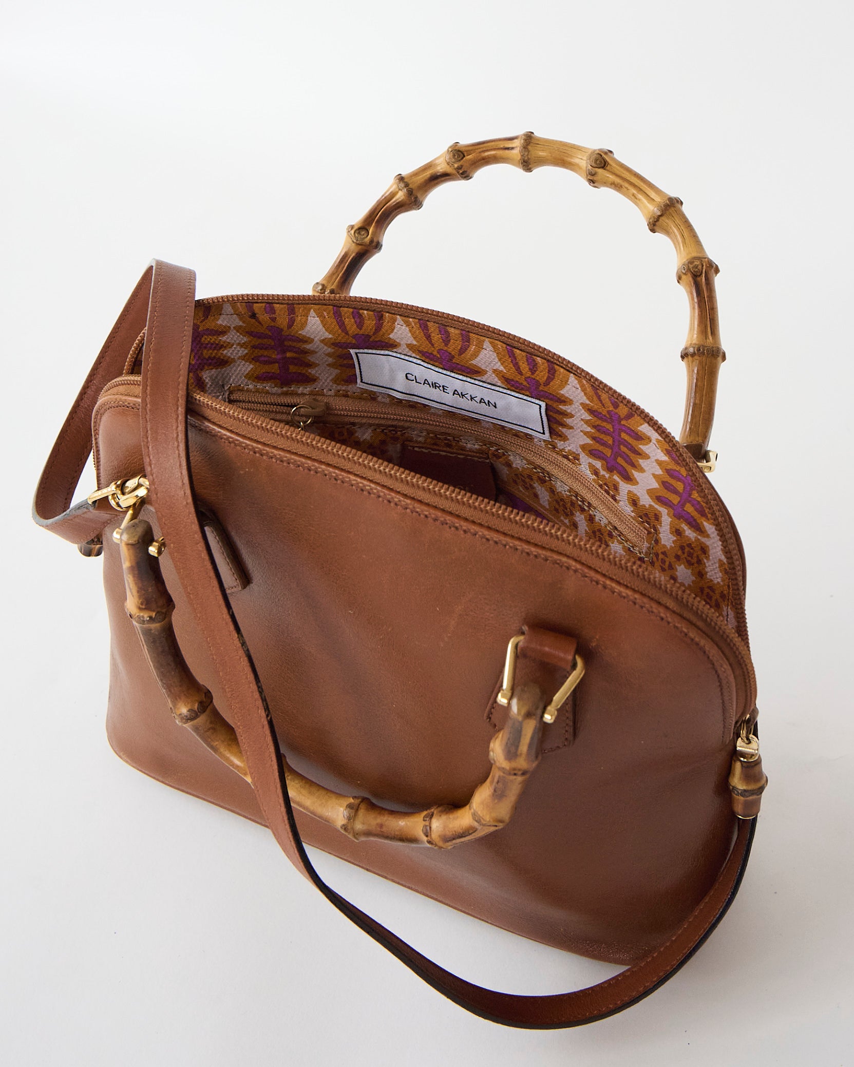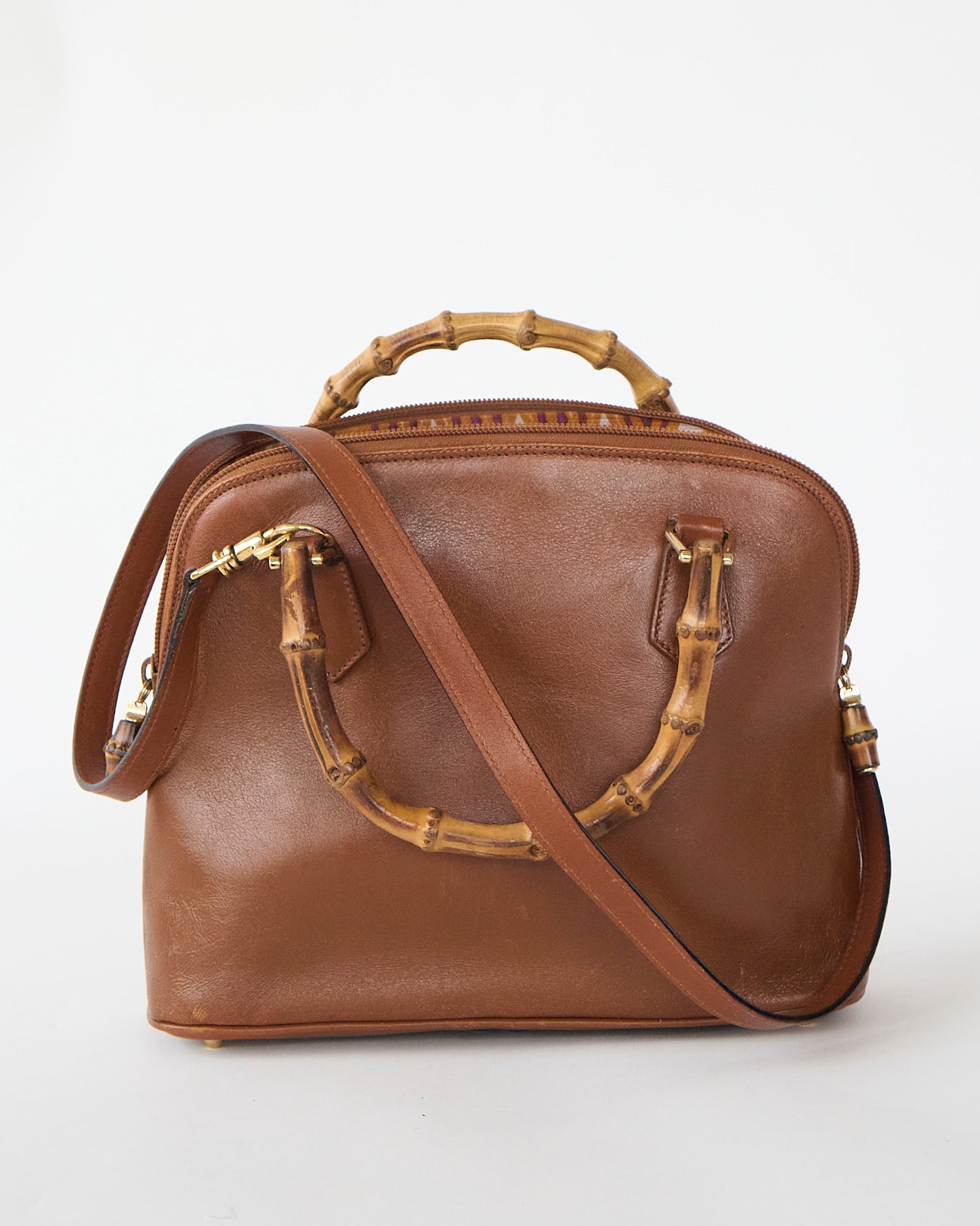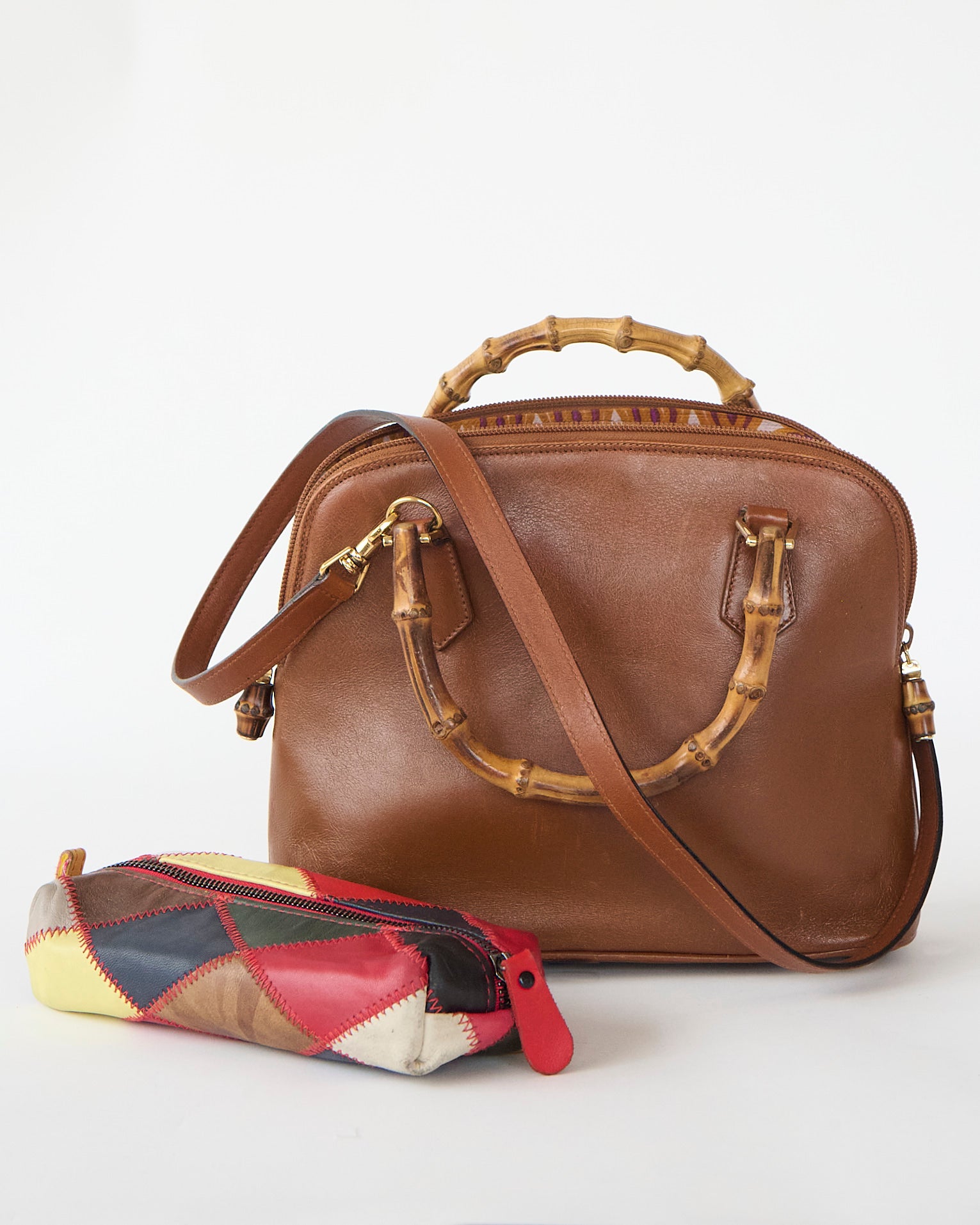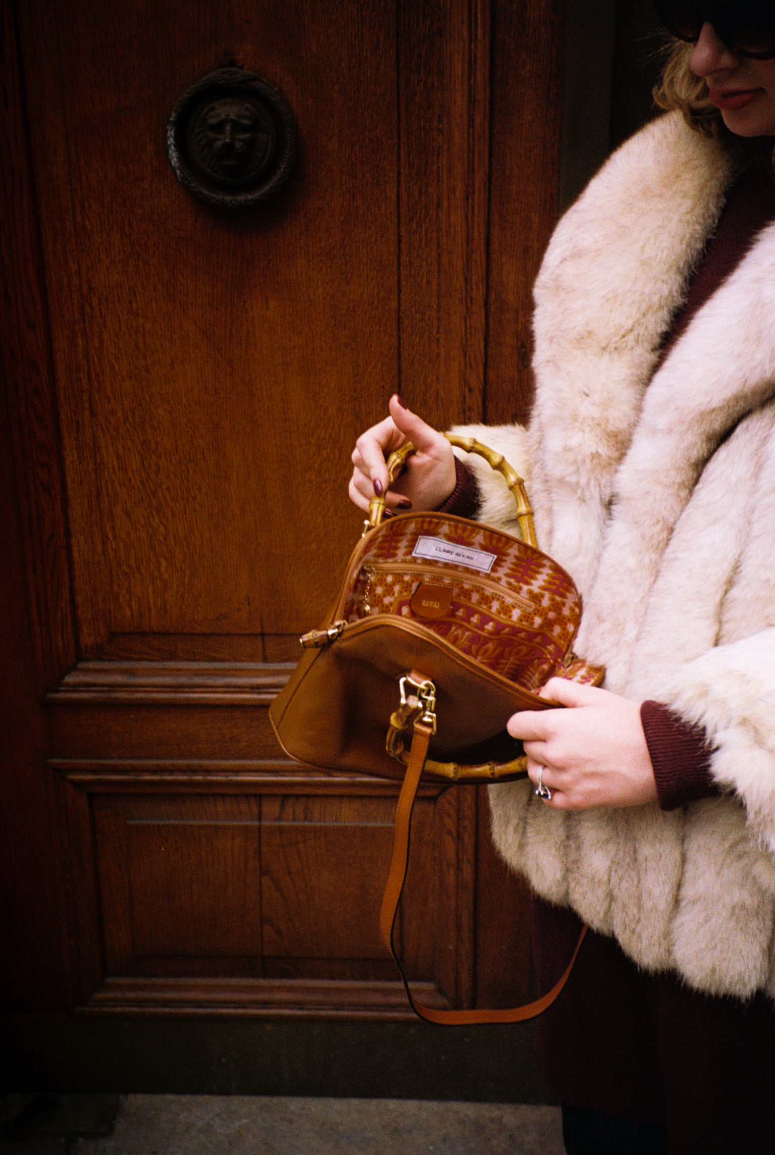 Giving a new lease on life to this beautiful chestnut brown vintage Gucci mini "doctor" bag. We've upcycled this designer bag a new groovy vintage silk scarf lining. It comes with a real bamboo handle and a detachable leather